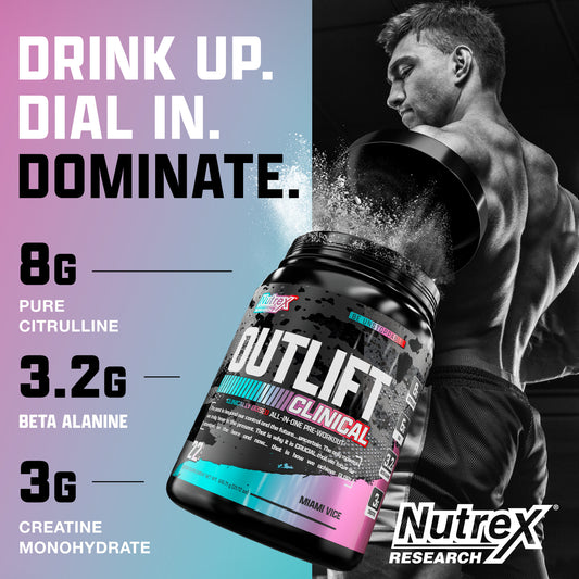Nutrex Outlift Clinical Pre-Workout 22srv (1 srv 29g: 300mg caffeine, 8g citrulline, 3.2g beta alanine, 3g creatine, 4g bcaa, 2g eaa, 2g taurine)