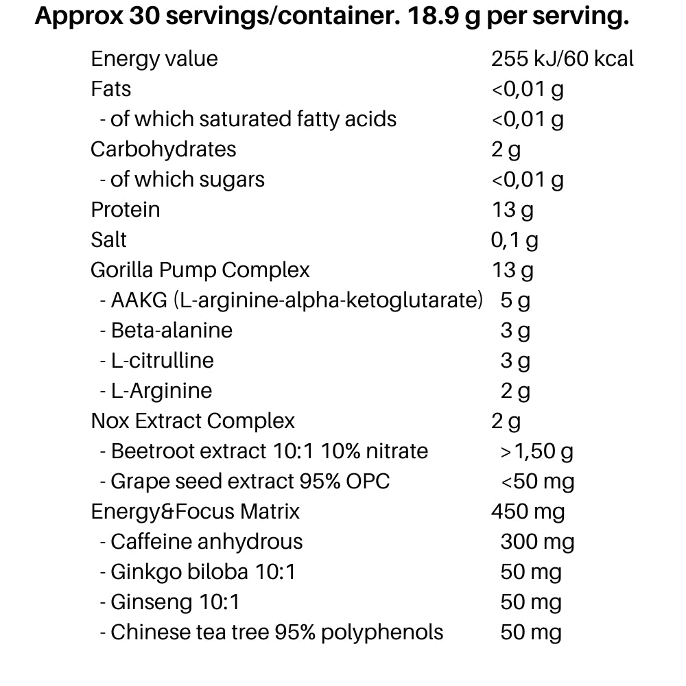 💪 Extreme Pump & Endurance Loaded with 5g AAKG, 3g citrulline malate, and 2g beta-alanine—veins, veins, and more veins!